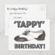 O design apresenta uma ilustração original feita à mão de um sapato de dança estilo oxford preto e branco, com PARABÉNS TAPPY em uma fonte divertida. Basta personalizar para um convite de aniversário temático de dança divertido.