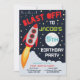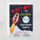 Convide todos os seus amigos para a festa temática Espaço divertida com estes convites de festas excelentes com fundo espacial e um design de foguete legal. Ideal para festas espaciais, festas científicas ou festas de aniversário temáticas astronautas.
