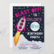 Convide todos os seus amigos para a festa temática Espaço divertida com estes convites de festas excelentes com fundo espacial e um design de foguete legal. Ideal para festas espaciais, festas científicas ou festas de aniversário temáticas astronautas.
