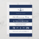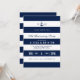 Um convite de aniversário com tema náutico em destaque e moderno, apresentando um local para os monogramas do casal e informações relevantes sobre o evento dentro de listras horizontais.