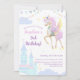 Convite de aniversário com um adorável unicórnio.