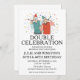 Celebre dois aniversários especiais com este convite preto e elegante. O design minimalista apresenta um layout limpo e uma tipografia elegante, fazer perfeito para celebrações adultas. Personalize o texto com os nomes dos celebrantes de aniversário, os detalhes da festa e uma mensagem personalizada.