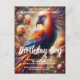 Garoto de Aniversário! Convide amigos e familiares para a sua festa de aniversário com este simples Um colorido pássaro Condor empoleira-se graciosamente em um galho de árvore, mostrando sua plumagem vibrante contra um fundo de céu claro.