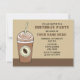 Um convite de aniversário que caracteriza uma ilustração de um café congelado cobriu com chantiliy em a para ir copo na esquerda. Personalize o texto marrom e preto com detalhes de sua ocasião.