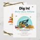 Perfeito para o dia especial do seu pequeno construtor, este convite divertido apresenta um tema de construção completo com escavadeira, capacete, broca, ferramentas e muito sujeira para uma celebração prática! Quer você esteja planejando uma aventura cheia de terra ou uma festa de artesanato DIY, este design prepara o cenário para um dia memorável. Personalize os detalhes e comece a construção!