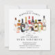 Convite de aniversário coquetel único com cocktails de aquarelas com garrafas de licor colocadas sobre fundo branco com um dorso de coordenação.