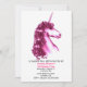 O convite de aniversário bonito da menina, com uma ilustração da cabeça de um unicórnio feita no rosa. Personalize todo o texto, para o aniversário da sua criança. Pop de harmonização dos guardanapo de papel e do bolo do unicórnio feito sob encomenda disponíveis.