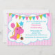 Enfie sua festa de aniversário da menina fora do direito com nossos convites cor-de-rosa adoráveis do aniversário do divertimento do dinossauro! Nosso partido de aniversário de criança de Dino convida características um dinossauro cor-de-rosa bonito com um cor-de-rosa e o balão e o cupcake azuis ajustam-se em um fundo cor-de-rosa da listra com uma bandeira colorida do partido. Aperfeiçoe para um primeiro aniversario da menina ou todo o aniversário da idade. Fácil personalizar com sua informação da informação da festa de aniversário. Visite nossa loja para o obrigado de harmonização você notas, etiquetas & selos postais. design ©Babystar