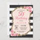 Convite de aniversário cor-de-rosa floral das peônias 50th para mulheres. Brilho Dourado. Cora o chique floral da flor da aguarela. Listras preto e branco. 13o 15o 16o 18o 20o 2ø 30o 40th 50th 60th 90 100th do 80 do 70, algumas idades. Digitas Printable. Para uma personalização mais adicional, clique por favor "personalizam-no" botão e usam-nos nossa ferramenta de design para alterar este modelo.