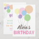 CONVITE DE ANIVERSÁRIO PESSOAL COM MODELO PARA ESCREVER O NOME. COM ILUSTRAÇÃO DE BALÕES EM CORES DIFERENTES, NA PARTE TRASEIRA O ENDEREÇO E O TEXTO SÃO ESCRITOS EM COR, CADA LINHA UMA COR DIFERENTE QUE CORRESPONDE AOS BALÕES.