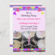 Um convite para o cupcake de aniversário divertido. Rochas de glacé liso com aspersores e velas no topo. Personalize com todas as informações de sua parte conforme desejado.