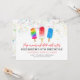 Este adorável convite de aniversário temático de picolé apresenta obra de arte em aquarela e fundo de respingo de tinta. Personalize este convite adorável com suas informações!