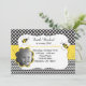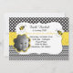 Este design tem bolinhas e impressões preto e branco da viga. Há duas abelhas da bolha que voam em torno do convite com um lugar pôr a foto da sua criança.