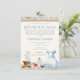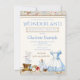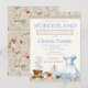 Convite de aniversário da Alice no País das Maravilhas com lindo vestido azul aquarela, xícaras de chá, chapéu, relógio, chave, etc., em um fundo vintage. Este convite de aniversário da Alice no País das Maravilhas com tema de contos de fadas é facilmente personalizado para o seu evento, basta adicionar seus detalhes.