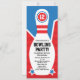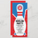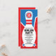 A caracterização do convite de festas da boliche customizável convida o texto em uma idade customizável branca do aniversário do pino de boliche. Fundo azul e vermelho. O excelente convida para partidos dos miúdos.