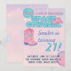 Yeehaw e decolar! Celebre com estilo com este convite da "Cowgirl do Espaço" na moda—perfeito para aniversários, festas marcantes ou qualquer celebração fora deste mundo. Com destaque para tons pastéis rosa, turquesa e elementos cósmicos como estrelas, botas e planetas, este design combina charme western retrô com diversão galáctica.