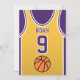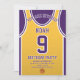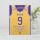 Celebre seu dia especial com este Convite de Aniversário de Basball Jersey, projetado para fãs de basquete verdadeiros! Com uma design ousada de camisa inspirada pelas icônicas cores roxa e dourada, este convite é perfeito para crianças, adolescentes e adultos que adoram o jogo. Personalize-o facilmente com seu nome, idade, detalhes de festas e até mesmo o número do grupo em apenas alguns cliques. Disponível em vários tamanhos, impresso em papel de qualidade superior com uma grande variedade de acabamentos para corresponder ao seu estilo. Escolha dentre diferentes tipos de papel, impressão rápida e envio rápido para que seus convites cheguem a tempo. Seja para uma festa com tema desportivo ou para uma comemoração de fãs Lakers, este convite é a forma perfeita de entusiasmar os vossos convidados.