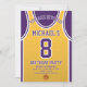 Celebre seu dia especial com este Convite de Aniversário de Basball Jersey, projetado para fãs de basquete verdadeiros! Com uma design ousada de camisa inspirada pelas icônicas cores roxa e dourada, este convite é perfeito para crianças, adolescentes e adultos que adoram o jogo. Personalize-o facilmente com seu nome, idade, detalhes de festas e até mesmo o número do grupo em apenas alguns cliques. Disponível em vários tamanhos, impresso em papel de qualidade superior com uma grande variedade de acabamentos para corresponder ao seu estilo. Escolha dentre diferentes tipos de papel, impressão rápida e envio rápido para que seus convites cheguem a tempo. Seja para uma festa com tema desportivo ou para uma comemoração de fãs Lakers, este convite é a forma perfeita de entusiasmar os vossos convidados.