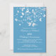 Convite de aniversário de casamento de pássaros de amor moderno e elegante apresenta um casal de pássaros de amor com um galho de árvore adornado com borboletas e corações sobre um fundo de listras azuis turquesa. Belo para uma celebração de aniversário de casamento de 25, 30, 40, 45, 50 ou 60 anos. Disponível em nossa loja em uma grande variedade de opções de cores modernas e elegantes.