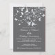 Belo convite de aniversário de casamento de pássaros de amor moderno e elegante apresenta um par de pássaros de amor com um galho de árvore adornado com borboletas e corações sobre um fundo de listras finas cinza escuro carvão. Belo para uma celebração de aniversário de casamento de 25, 30, 40, 45, 50 ou 60 anos. Disponível em nossa loja em uma grande variedade de opções de cores modernas e elegantes populares