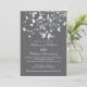 Convite de aniversário de casamento com estilo e moderno para casal de pássaros apresenta um par de pássaros amorosos com um galho de árvore adornado com borboletas e corações sobre um fundo cinza carvão escuro com listras finas. Belo para uma celebração de aniversário de casamento de 25, 30, 40, 45, 50 ou 60 anos. Disponível em nossa loja em uma grande variedade de opções de cores modernas e elegantes.