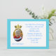 Convite de aniversário bonito do príncipe encantamento dos meninos. Este convite colorido da foto é feito no azul do aqua com uma área de texto branca e um texto azul. Uma área oval da foto, com uma coroa do ouro acima dela, está pronta para a fotografia do seu filho. Todo o texto está customizável e pronto para personalizar para o primeiro aniversário do seu príncipe pequeno.