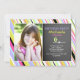 Este convite à moda tem uma mistura colorida de listras diagonais e ver-através das bolinhas. Caracteriza um painel do quadro para sua personalização ao lado de uma janela moldada da foto e é apropriado para toda a idade.