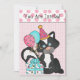 O convite para o aniversário de uma garota doce feito em cores pastéis adoráveis e gráficos adoráveis de um gambá, com balões e presentes. Coloque um fundo branco de bolinhas cor-de-rosa e brancas e verifique se este convite bonito é perfeito para qualquer garota do grande dia. Personalize o texto, na frente e atrás do convite para atender às suas necessidades.