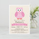 Coruja rosa, convite de aniversário de menina de bosque. Personalize este bonitinho, retrô, sinta convite com o nome do seu filho. Bela, simples, design simples. Perfeito para o primeiro bebê, 1rua, aniversário, criança, crianças pequenas, ou crianças mais velhas. As cores incluem rosas claro castanhas e pastéis.