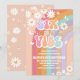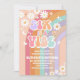Celebre o dia especial do seu filho com este convite de aniversário retrô de arco-íris, apresentando listras pastel, margaridas descoladas, borboletas, sinais de paz e rostos sorridentes. Perfeito para uma festa de 6 anos, este design vibrante captura a vibe divertida e boêmia dos anos 70 com cores alegres e motivos alegres. Personalize com os detalhes da sua festa para criar um convite único e atraente que os convidados vão adorar. Ideal para aniversários de crianças, especialmente meninas que adoram temas coloridos e descolados.