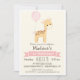 girafa bebê, selva, animais de zoológico, convite de aniversário de moça com tema safari. Personalize este bonitinho, retrô, sinta convite com o nome do seu filho. Bela, simples, design simples. Perfeito para o primeiro bebê, 1rua, aniversário, criança, crianças pequenas, ou crianças mais velhas. As cores incluem rosas claro castanhas e pastéis.