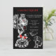 Convite personalizável do partido temático Casino Night, ilustrado em desenhos brancos e vermelhos sobre um fundo preto com o Rei e a Rainha de; Corações, diamantes, paus e fatos de cartas de espadas, roletas, dados e chips de pôquer. Perfeito para Festas de aniversário, assaltantes do Fundo de Caridade ou outras celebrações de partidos.