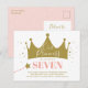 Um convite de aniversário de princesa caprichoso e fofo com uma coroa dourada com estrelas cintilantes, varinha listrada e texto editável. Destaque o nome da sua pequena princesa dentro da coroa mágica se preferir com o elemento da varinha móvel apontando para a idade. Vem com verso de padrão coordenado. Clique em editar para personalizar a imagem e o texto.
