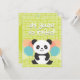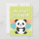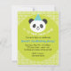 PARTE DIANTEIRA: Limão e luz - fundo verde do teste padrão ilustrado por uma panda sentada bonito com muitos ballons do partido em sua parte traseira. Escrito "oh! você é assim que convidado!" PARTE TRASEIRA: Mesmo teste padrão que o fundo, caracterizando um círculo do verde limão, ilustrado por uma cara bonito da panda do kawaii que veste um chapéu do partido. sob escrito "a meu partido super da panda". PERSONALIZE: Mude o texto modelo existente por sua informação do partido. Para o tamanho de pia batismal, a cor ou o tipo mudanças usam a laranja personalizam-na botão.