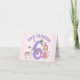 Sexta princesa bonitinha de aniversário a rosa, com Unicórnio, sapo e borboleta, com o texto "Esta Princesa tem 6 anos" em roxo.