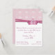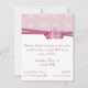 Convite de aniversário, branco e cor-de-rosa, com gráficos de renda cor-de-rosa, no topo e no verso do convite. Uma fita dupla rosa corta a placa, com uma coroa rosada a decorar. Personalize o texto cor-de-rosa para a festa de aniversário da sua princesa.
