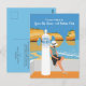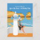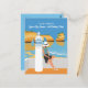 A região do Algarve é famosa pela sua incrível costa e belas praias com falésias de rocha amarela e formações de cavernas, águas cristalinas quentes e sol brilhante. Os turistas amam as praias de costas para as falésias, no extremo sul de Portugal. É um destino de férias perfeito para os amantes da praia. A arquitetura caiada de branco com portas e telhados em estilo mourisco, onde velhas chaminés tradicionais ainda estão de pé, também é uma atração. Essas chaminés decorativas só começaram a aparecer nas casas no final do século XVII e início do século XVIII. Alguns dizem que eram uma forma de identificar uma casa porque todas parecem iguais pintadas de branco e um símbolo de riqueza. Quanto mais ornamentada, mais rico seria o proprietário. As chaminés ornamentais algarvias inspiraram esta ilustração criada em estilo de antigo cartaz de viagem vintage com simplicidade e cores brilhantes. Se você tem um amigo, colega de trabalho, professor ou parente de nacionalidade portuguesa, eles certamente apreciarão este convite. Todas as palavras são personalizáveis. Você pode mudar as palavras, a fonte, as cores, colocá-lo em