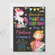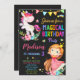 Junte-se a nós para um aniversário mágico! Convite de aniversário para Watercolor Unicorn e Princesa Convite de aniversário para Watercolor Unicorn Convite mágico Convite de aniversário mágico. Convide os seus amigos com este belo convite para o tema mágico do arco-íris! Este convite de unicórnio apresenta um pequeno unicórnio feliz, uma princesa bonita dançante em vestido cor-de-rosa, terra colorida, algumas flores e arco-íris ao redor. Simplesmente edite este menu de personalização fácil de usar modelo para torná-lo especial.