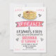 O convite de aniversário das panquecas e dos pijamas desta menina do doce caracteriza algumas panquecas, bandeira da aguarela, alguns corações e alguns elementos decorativos em uma aguarela feita a varredura forram o fundo. A parte traseira do convite é um teste padrão de bolinhas da aguarela do falso no rosa. O convite de aniversário floral das panquecas e dos pijamas da aguarela desta menina está pronto para ser personalizado.