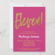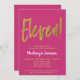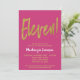 Um elegante, simples, mas impressionante convite de aniversário rosa-quente e 11 de ouro. Texto do script de visão na parte superior e texto dourado abaixo com o nome em branco sobressalente