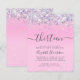 Convite de aniversário de 13 anos feminino, glamoroso e bonito, econômico, com confete de brilho holográfico roxo, rosa e prata contra um fundo rosa e "treze" em uma fonte de letra sofisticada cinza claro com floreios.