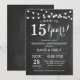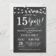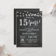 Convite de Aniversário de 15 Anos de Casamento. Fundo de Quadro Negro. Luzes de Corda. Preto e Branco. 1º, 2º, 3º, 4º, 5º, 10º, 15º, 20º, 25º, 30º, 35º, 40º, 45º, 50º, 55º, 60º, 65º, 70º, 75º, 80º, Qualquer Ano. Aniversário de Adulto. Festa de Aniversário de Homem ou Mulher. Para personalização adicional, clique no botão "Personalizar" e use nossa ferramenta de design para modificar este modelo.