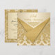 Este elegante e sofisticado convite de aniversário de 15 anos de casamento com padrão de brocado damasco bege e dourado e com as abas frontais douradas brilhantes impressas tem um ornato dourado na frente e um lustre de sala de baile formal preto no verso. Faria uma declaração sofisticada para o casal que celebra 15 anos de casamento. Sugiro papel metálico gelo ou champanhe, feltro creme ou papel básico. Se precisar de algum item correspondente, envie um e-mail para niteowlstudio@gmail.com.