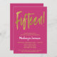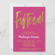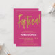 Um elegante, simples, mas impressionante convite de aniversário rosa-quente e 15 de ouro. Texto do script de visão na parte superior e texto dourado abaixo com o nome em branco sobressalente