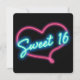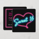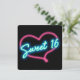 Convite de Aniversário de 16 Anos SWEET com Coração em Neon. Personalize o verso como desejar.