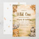 Prepare-se para uma aventura na selva com este encantador convite de 1º aniversário "Wild One"! Perfeito para o dia especial do seu pequeno explorador, este design apresenta uma variedade de adoráveis animais de safari em aquarela, incluindo um macaco brincalhão, uma girafa amigável, um elefante doce, um filhote de leão corajoso e uma zebra listrada, todos contra um cenário quente e ensolarado da savana. A elegante letra "Wild One" e "Aniversário de 1 ano da Abigail" são totalmente personalizáveis. Este convite é ideal para meninos e meninas, oferecendo uma maneira encantadora de convidar os convidados para uma celebração inesquecível do primeiro aniversário.
