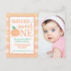 Este convite é doce como um pêssego! Características de listras de aquarela em tons de pêssego com a frase "Annleigh é uma doce". Perfeito para uma festa de primeiro aniversário de verão com tema de pêssego. Para personalizar ainda mais, adicione a foto do seu filho.