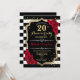 Convite de Aniversário de Casamento de 20 Anos Design elegante preto branco vermelho com brilho falso. Listras pretas e brancas com rosas vermelhas.