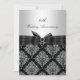 Convite de Aniversário. Damask prateado e preto com laço preto de joia. Exclusivo Zazzle. Personalize com seus próprios detalhes. POR FAVOR, OBSERVE que todas as imagens são planas! Elas NÃO têm Laços, Diamantes ou Joias reais!!