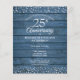 Com delicada confete de corações de amor prateados sobre um fundo de painéis de madeira de celeiro rústico azul. Personalize com as informações do seu aniversário de prata de vinte e cinco anos em letras elegantes. Criado por Thisisnotme©